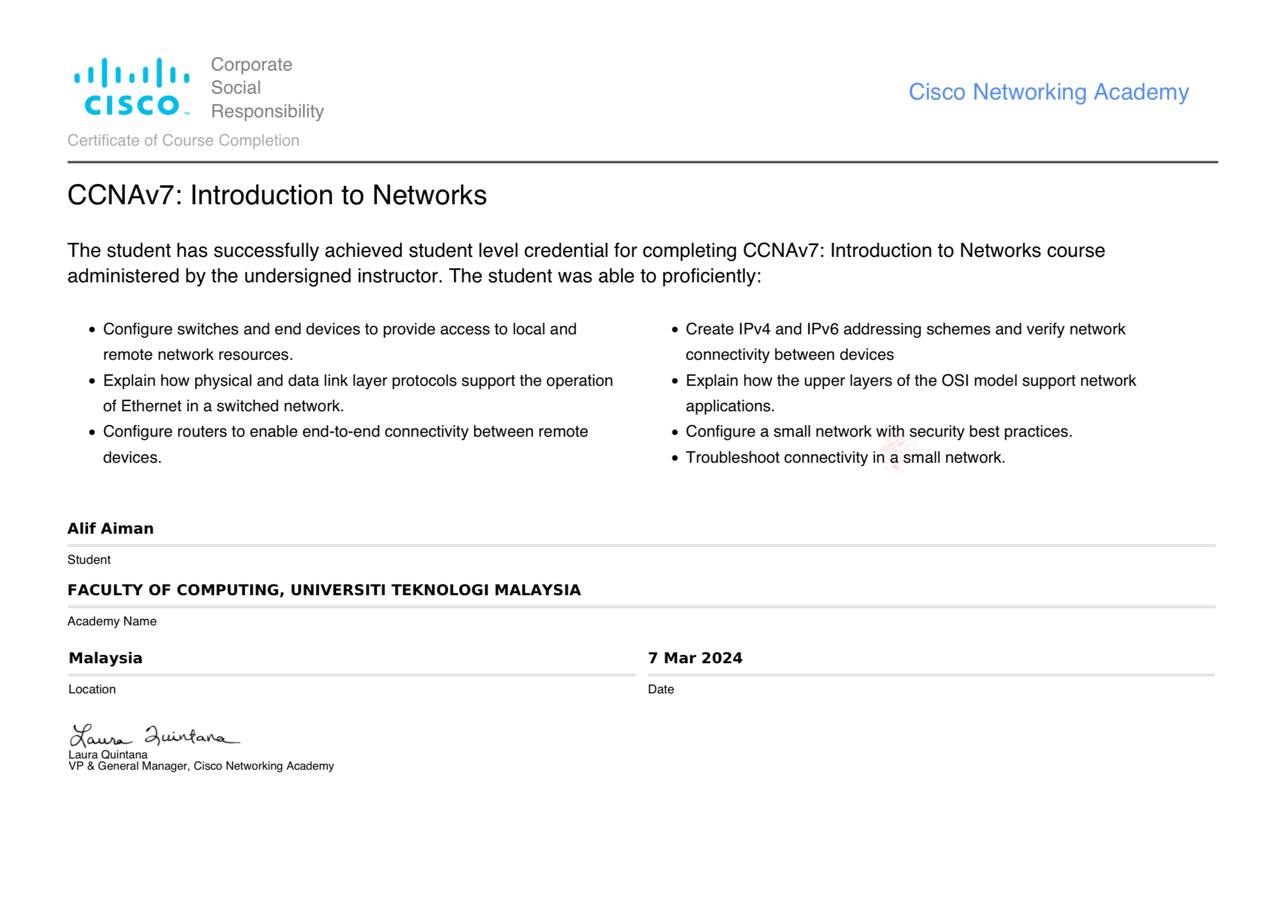 UTM Student | Bachelor of Computer Science(Computer Network and Security).